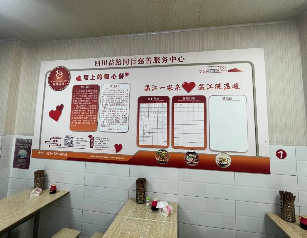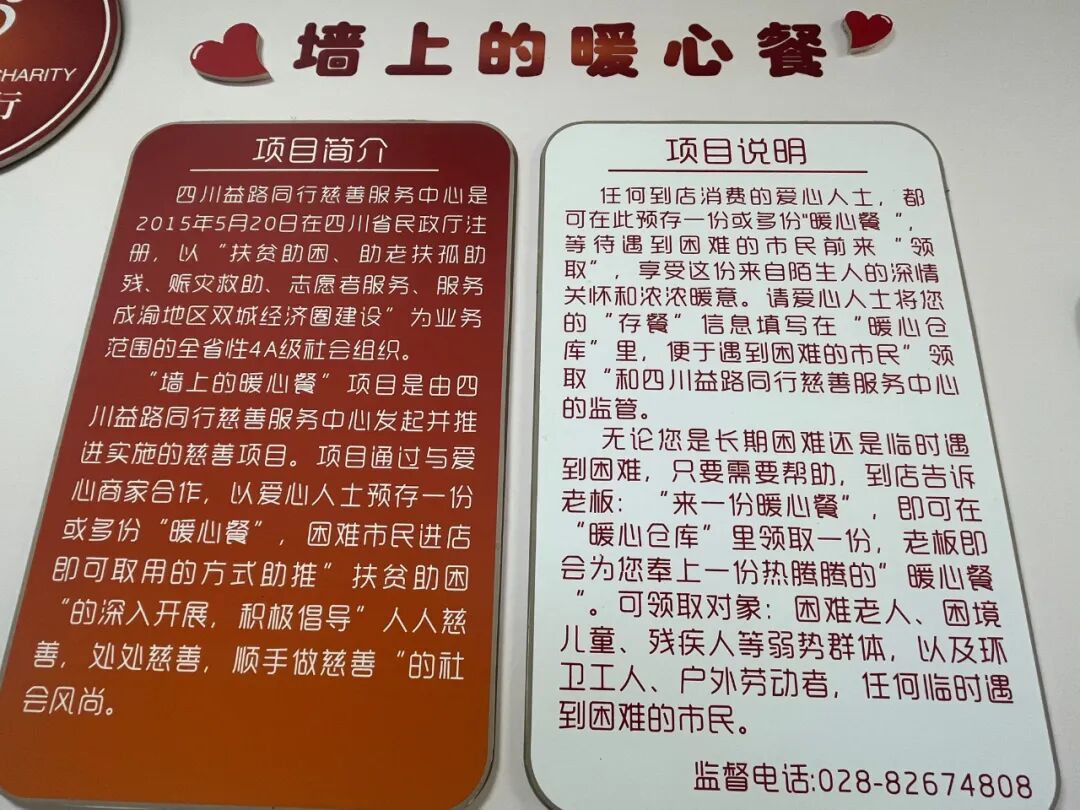 “去年7月初,我通过温江融媒的报道,看到了‘谭米线’推出‘暖心餐’的爱心故事。”杨艳琼回忆道,“我感到特别温暖,也想依托自己的面店践行公益、传递爱心。”不久后,杨艳琼便和四川益路同行慈善服务中心取得联系,在其指导助力下顺利推出了“暖心餐”。