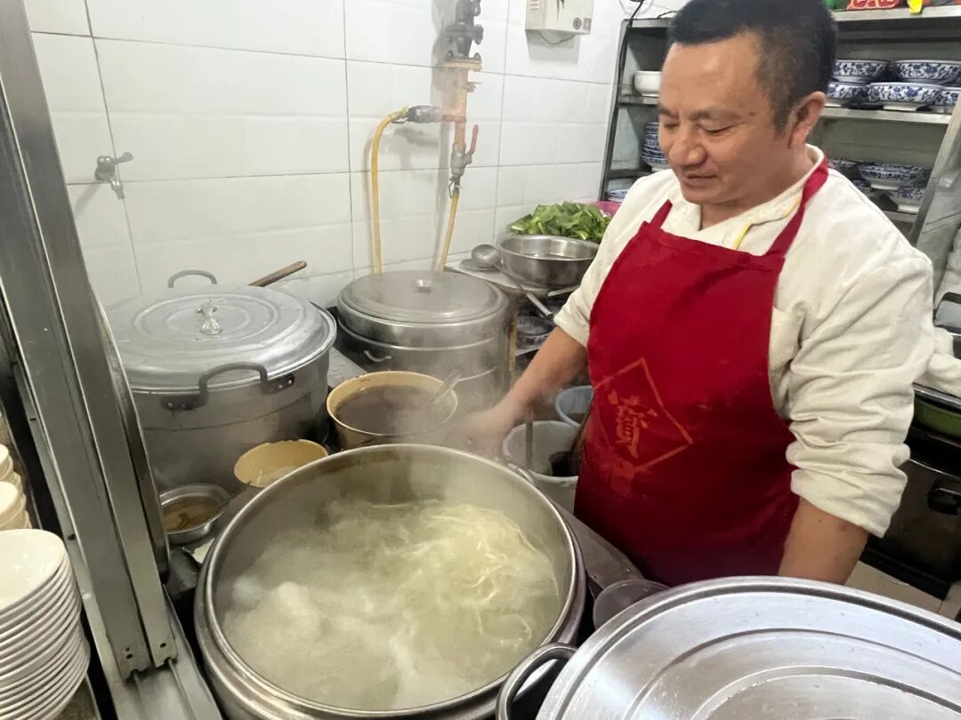 不断有来店里吃面的爱心人士参与到‘暖心餐’的公益慈善行动中,也陆续有需要帮助的人来到店里领取‘暖心餐’。