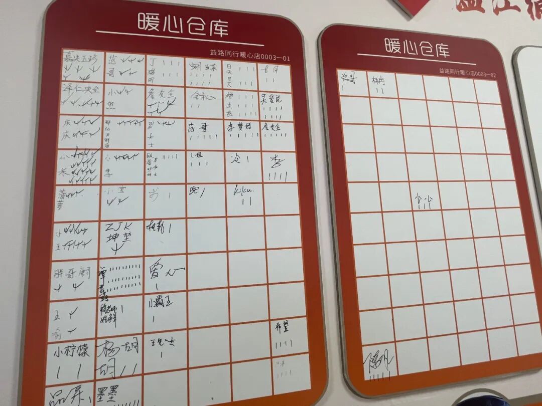“墙上的每一个‘1’代表一份二两或三两的‘暖心餐’,每份‘暖心餐’由爱心人士捐赠10元,再由我们自己补贴2元或4元。”杨艳琼指向墙上的爱心贴纸向记者介绍道,到店消费的爱心人士都可预存一份或多份“暖心餐”,预存后在墙上进行登记,需要帮助的人吃了“暖心餐”后就在相应的数字后面打钩,代表“领取”了,“这份善意虽小,却能让真正需要帮助的人吃口热乎的面条,感到一丝温暖。”