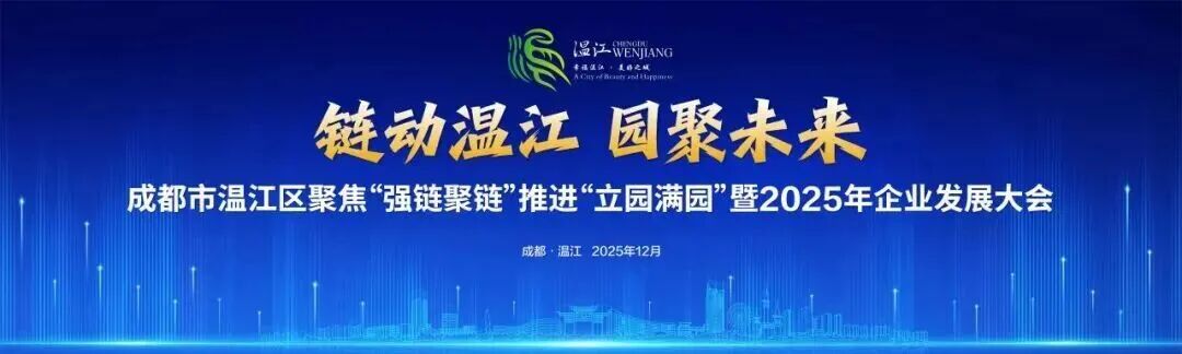 ▲2025年12月26日,成都市温江区聚焦“强链聚链”推进“立园满园”暨2025年企业发展大会召开