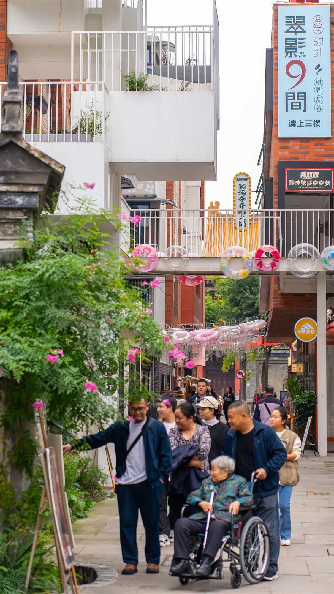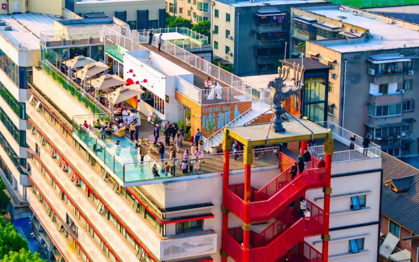 文庙·印巷文创街区作为一条融合古今的商业街,咖啡、美食、书店、服装店等时尚消费场景集聚,将时尚潮流的生活风尚浓缩于方寸之间,持续吸引着各地潮人前来探访打卡。在店铺里,老板和熟客谈论着日常点滴;在高处,一盏茶,一块点心,和亲朋好友交谈着生活趣事......烟火日常从这里悄然流淌。