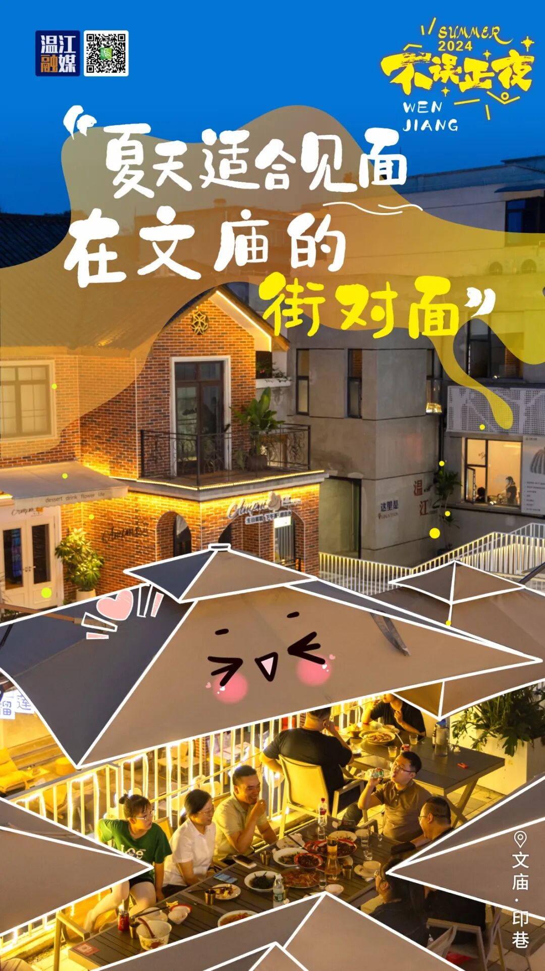 夜晚总要见一面,温江人爱去文庙对面。文庙·印巷是文庙片区城市有机更新项目,经过改造的原粮食局公房、高炮营大院、光祈读书处等建筑已摇身一变,成为新旧碰撞的打卡聚集地。
