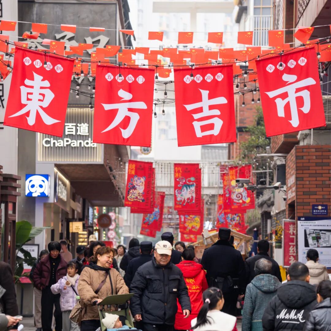 文武路是一条极具历史文化底蕴与生活气息的街道,它承载着温江往昔的记忆,沿途分布着不少古朴建筑,见证了岁月的变迁,街道两旁各类店铺林立,充满了烟火气。这个春节,和家人一起逛逛吧。
