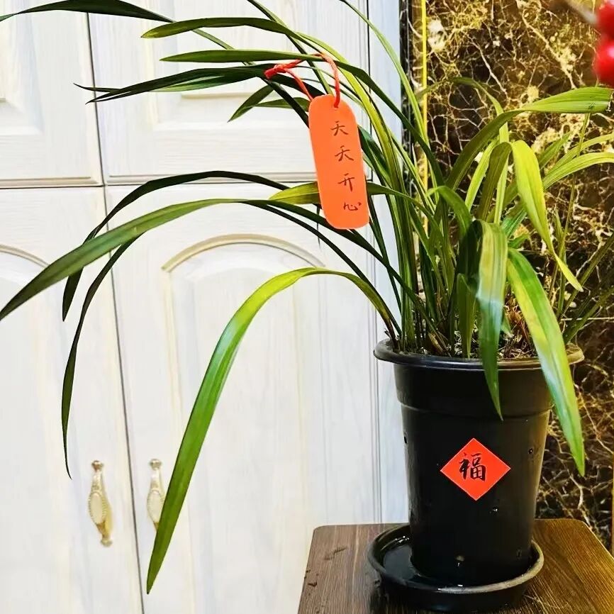 再带老爸购一盆开运竹摆桌上
